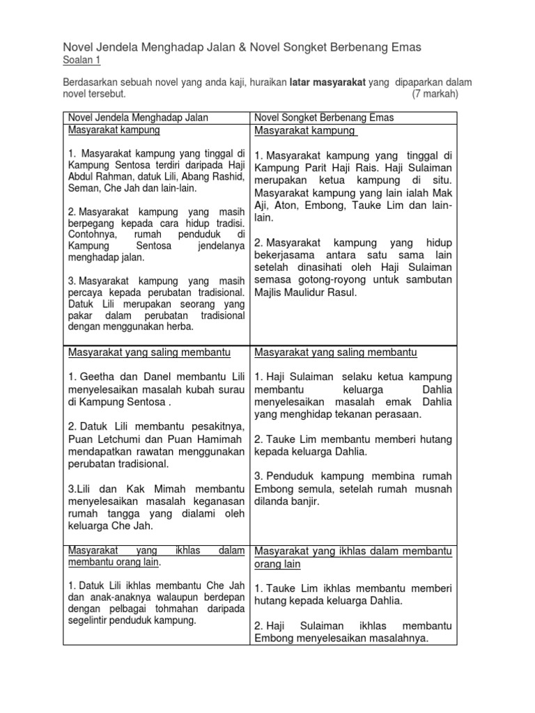 Nota Novel Jendela Menghadap Jalan Dan Soalan Serta Contoh Jawapan
